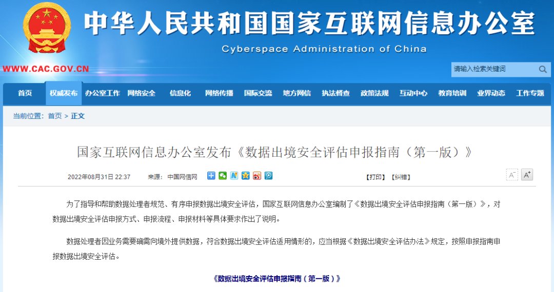 - ● 国家网信办发布《数据出境安全评估申报指南 (第一版)》